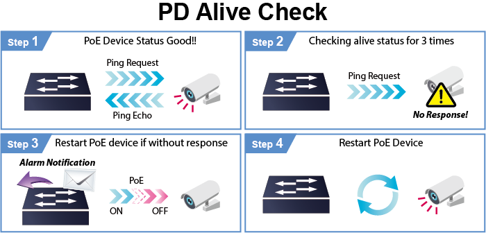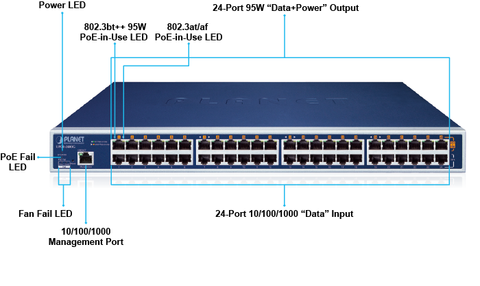 The 802.3bt PoE++ technology provides full power control on individual PoE ports