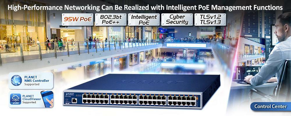 The recently released UPOE-2400G switch model is a high-density, managed, and fast PoE++ connection system designed for global upgrading of existing systems to the IEEE 802.3bt level. The switch allows for network improvement without replacing previous devices. TLS version 1.2 and TLS version 1.3 protocols have expanded the switch's functional capabilities, increasing protection against cyberattacks, while additional Planet services such as NMS, Cloud Viewer, DDNS, and DDNS Easy provide users with a wide range of tools.